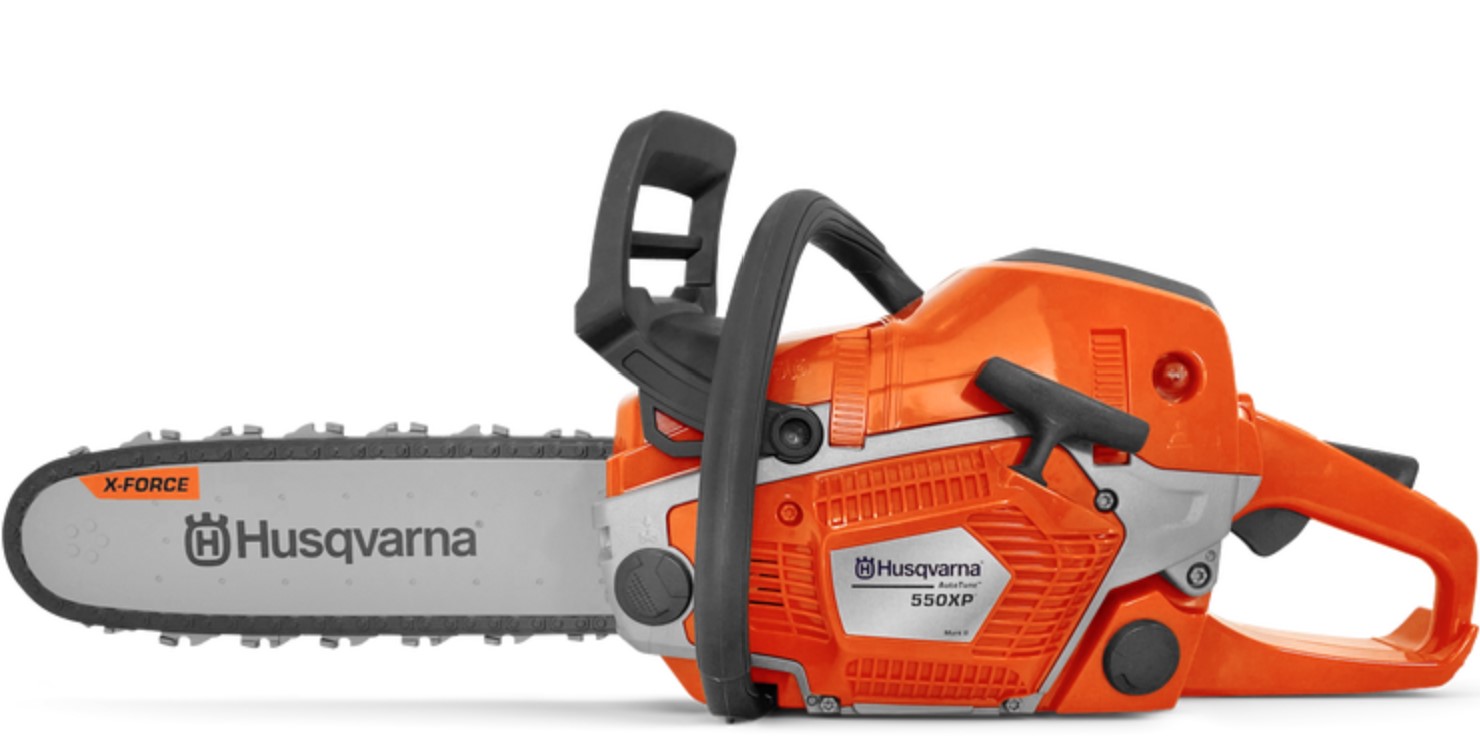 Spielzeug-Kettensäge 550XP, batteriebetrieben. Rottierende Kunstoffkette mit authentischen Motorgeräuschen, kindergerechtes Design.